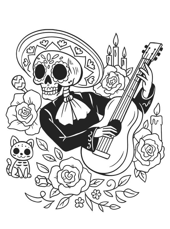 kleurplaat dias los muertos gitaar 2