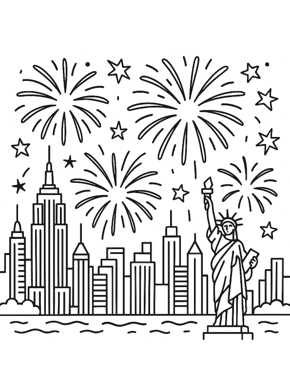 kleurplaat happy new year new york