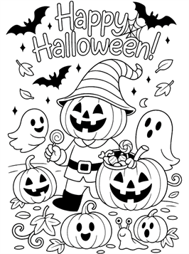 Ontdek de leukste kleurplaten voor kinderen en volwassenen over Halloween. Van kabouters met pompoenhoofd tot trick-or-treat taferelen vol snoep en vleermuizen, perfect voor herfstknutsels, klaslokaaldecoratie of een griezelige middag thuis. Print eenvoudig en kleur zelf!