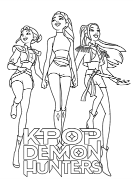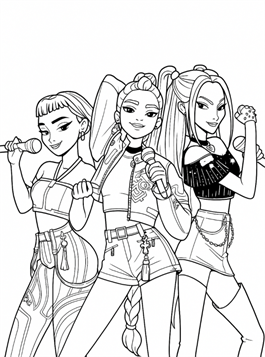 Onze KPop Demon Hunters kleurplaten, de heldinnen van K-Pop Demon Hunters van de spannende en kleurrijke Netflix-animatiefilm die een populaire K-popgroep volgt, die overdag optreedt op het podium en ’s avonds stiekem de wereld redt van duistere monsters. Je vindt hier stoere idol-helden die demonen bestrijden, magische krachten gebruiken en optreden in spectaculaire outfits vol details. Elke kleurplaat vertelt een klein stukje van hun wereld: van intense gevechtsscènes tot backstage-momenten waarin de hunters hun iconische K-Pop uitstraling laten zien.