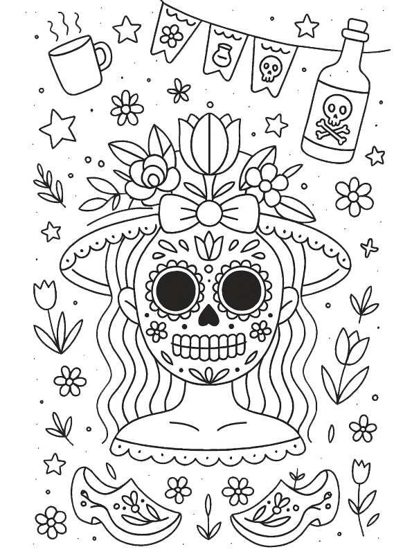 Maak persoonlijke kleurplaat van dias los muertos 3 kleurplaat