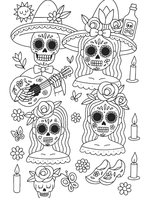 Maak persoonlijke kleurplaat van dias los muertos 6 kleurplaat