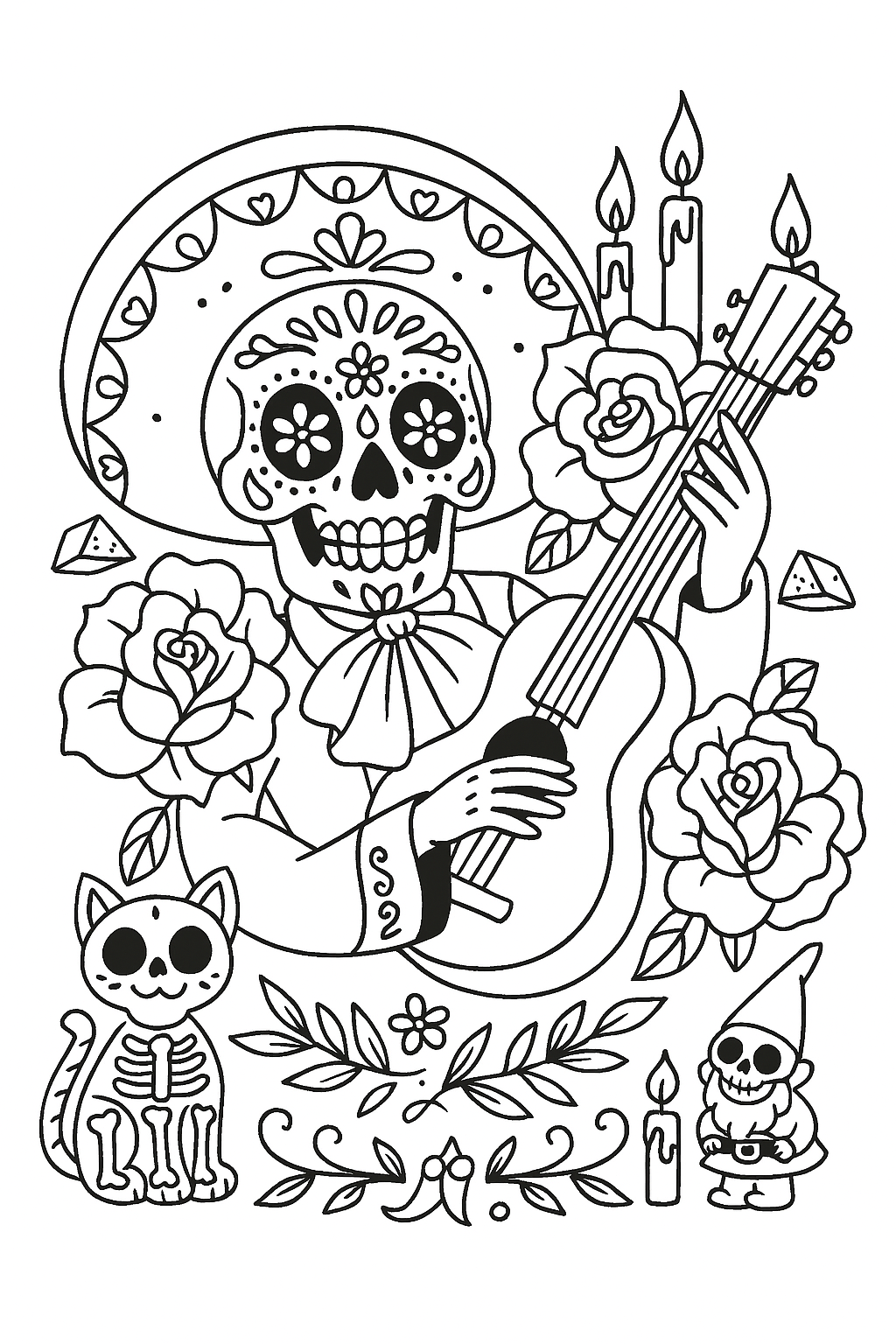 Maak persoonlijke kleurplaat van dias los muertos gitaar kleurplaat
