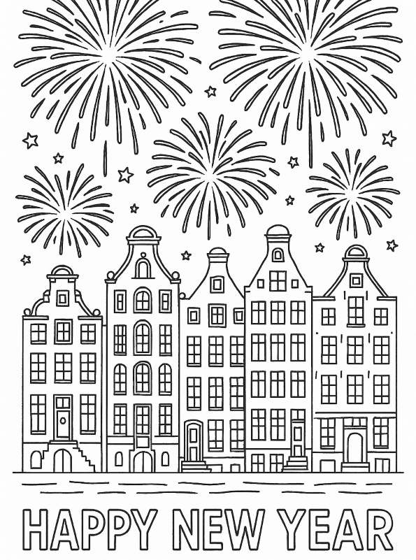 Maak persoonlijke kleurplaat van Happy new year Amsterdam kleurplaat