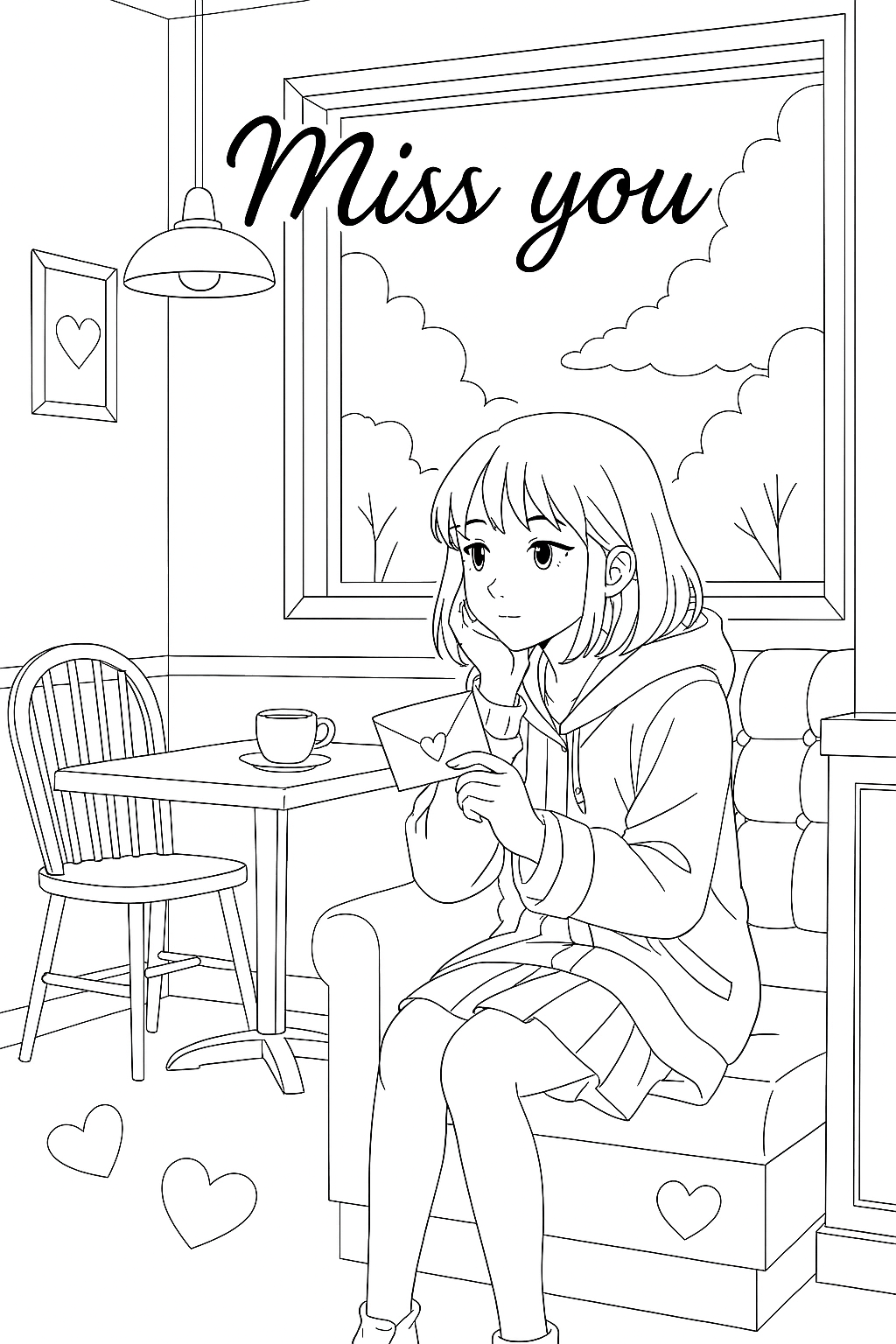 Maak persoonlijke kleurplaat van Miss you, love you kleurplaat