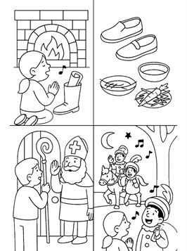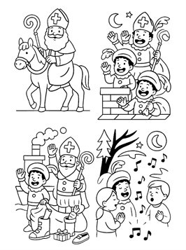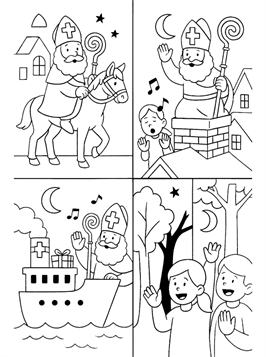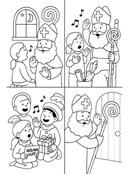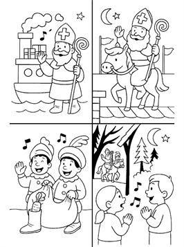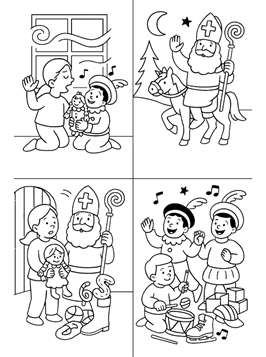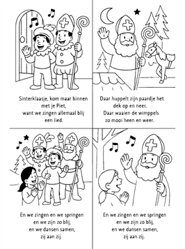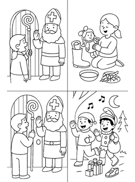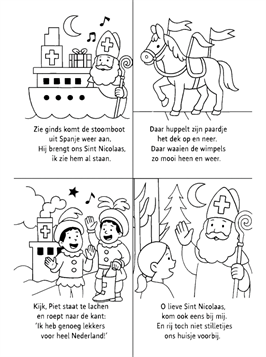 Een ander soort kleurplaat dit keer op kids-n-fun. Dit zijn vierluikjes die allemaal een sinterklaas liedje proberen uit te beelden. Het is weer eens wat anders om in één keer 4 kleine kleurplaatjes te maken.Leuk om op te hangen of in de schoen te stoppen.